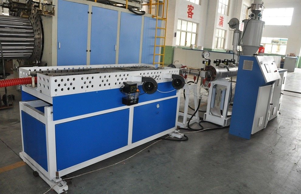 La linea di rinforzo dell'estrusione del tubo del filo di acciaio del PVC pricipalmente include l'espulsore, la macchina del filo di acciaio, il carro armato di spruzzatura dell'acqua, la macchina della trazione-fuori e l'argano d'avvolgimento ecc.