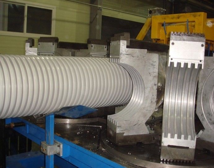 La macchina di formatura adotta la struttura chiusa completa orizzontale, che è facile da operare ed elegante nell'aspetto. Tramite il modulo della trasmissione dell'ingranaggio, la cassaforma è raffreddata dall'acqua, i prodotti sono raffreddati da aria e la pista di modellatura è lunga, di modo che il tubo ondulato prodotto ha velocità di modellatura veloce, forma ondulata uniforme, cuciture coerenti e le pareti interne ed esterne liscie lisciano, qualità stabile e possono mantenere l'operazione ad alta velocità.