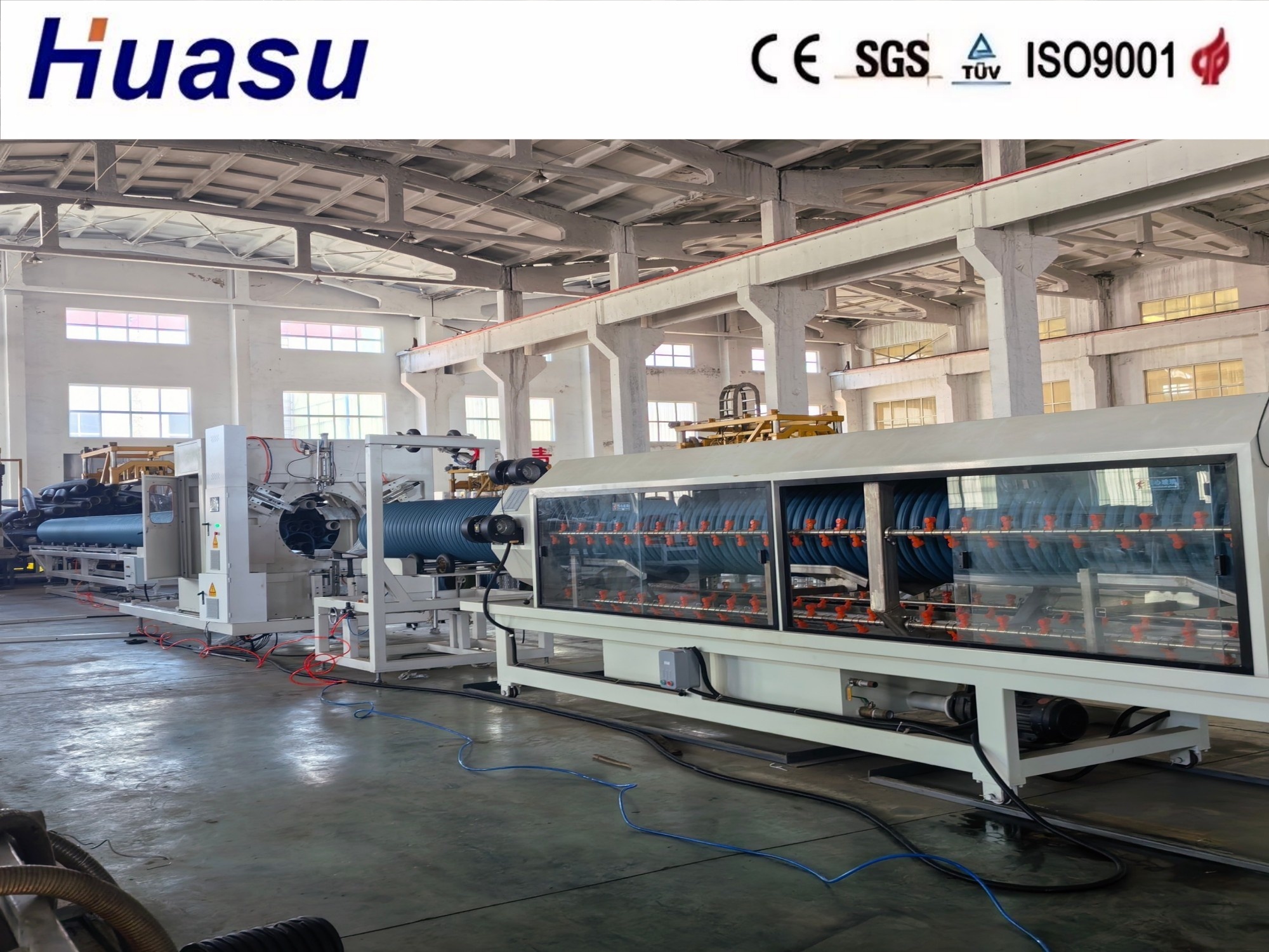 La linea di tubi ondulati a doppia parete rappresenta la terza generazione del prodotto aggiornato creato da Shandong HUASU.con la potenza dell'estrusore e la velocità di produzione del tubo migliorata del 20-40% rispetto al modello precedenteQuesti progressi hanno reso la sonorizzazione online più fluida, garantendo la qualità e le prestazioni dei prodotti di tubi ondulati.