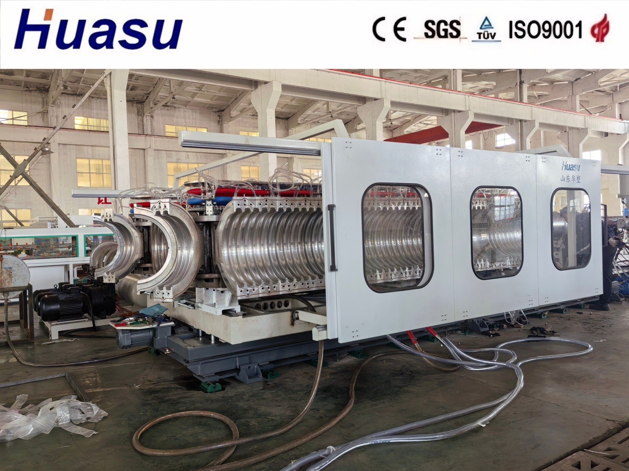 La linea di tubi ondulati a doppia parete rappresenta la terza generazione di tecnologia aggiornata di Shandong HUASU.Questa versione avanzata presenta miglioramenti significativi, tra cui un aumento del 20-40% della potenza dell'estrusore e della velocità di produzione rispetto ai modelli precedentiQuesti miglioramenti consentono un processo di sonorizzazione online più efficiente, garantendo una qualità e prestazioni superiori dei prodotti per tubi ondulati.