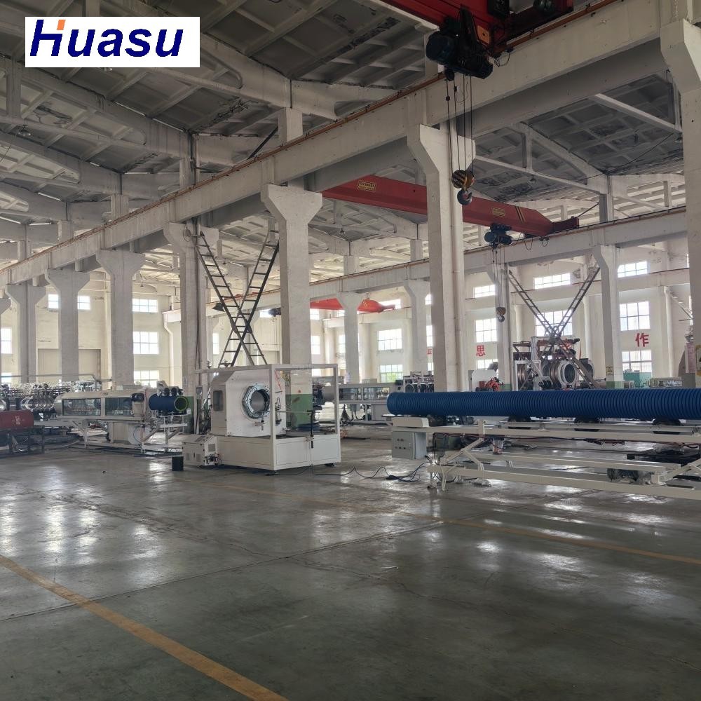 Linea di produzione di tubi ondulati a doppia parete ad alte prestazioni con sistemi di raffreddamento ad aria e acqua per una produzione efficiente di tubi.